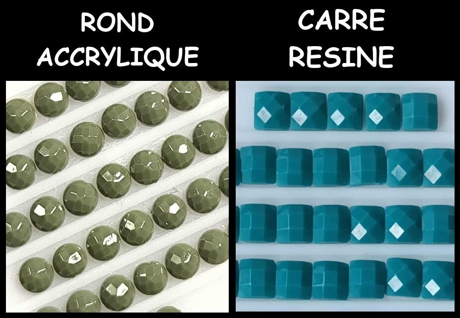 - Diamants carré résine ou rond acrylique